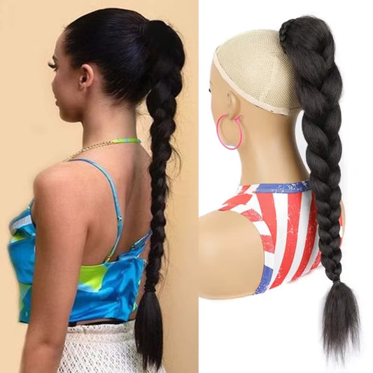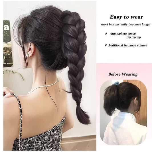 Braided Ponytail Bun Hair Piece - Pony Tail with Braided Hair Tie to Wrap Round